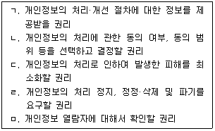 73. 다음 글상자에서 정보주체가 자신의 개인정보 처리와 관련하여 가지는 권리로만 짝지어진 것은?