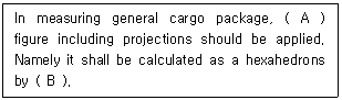 19. 포대(bag)화물을『2포대×3포대』배열로 높이 3단으로 쌓은 상태에서 측정한 길이가 L cm, 폭이 W cm, 높이가 H m일 때 이를 cbm(cubic meter)으로 나타내면?