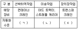 44. 부산항신항 등에서 운영 중인 반자동화(Semi-automation) 컨테이너 터미널의 하역작업별 자동화 수준의 연결로 옳은 것은?