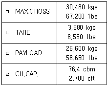 45. 컨테이너 표시 중 컨테이너에 실을 수 있는 화물의 총무게를 나타낸 것은?
