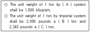 58. 일반화물 검량에서 중량톤(weight ton)에 관한 설명이다. ( )에 들어갈 내용으로 옳은 것은?