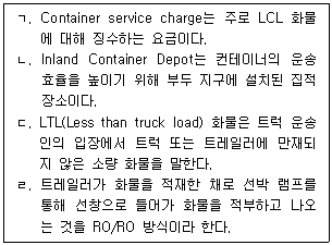48. 컨테이너 운송과 관련된 용어에 관한 설명으로 옳은 것을 모두 고른 것은?