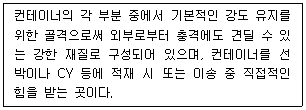 36. 컨테이너 구조에서 컨테이너를 걸어 올리고 고정시킬 수 있도록 컨테이너의 8개 모서리에 설치되어 있는 골재는?