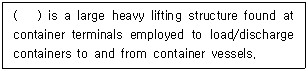 47. 컨테이너선에 적재될 컨테이너를 즉시 선적될 수 있도록 선적할 순서별로 적재하여 놓는 넓은 공간은?