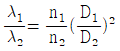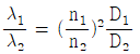 14. 그물어구의 상사법칙에서 길이를 λ, 뜸의 직경 D, 단위 길이당의 뜸의 수를 n, 모형은 첨자 1, 실물은 첨자 2로 한다면 다음 중 그 표현이 가장 적합한 것은?