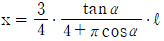 21. 트롤어구에 이용되는 길이 ℓ인 평면 전개판이 수중에서 영각 α로 예인될 때 받는 수력저항의 압력 중심 x을 표현한 식은?