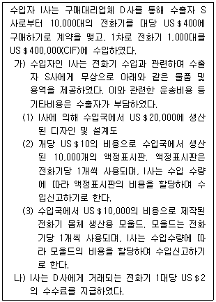 19. 다음 수입물품(전화기 1000대)에 대한 과세가격은 얼마인가?
