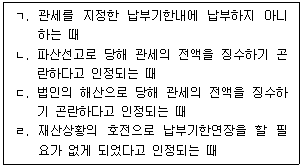 2. 관세법령상 관세의 납세의무자가 천재지변 등으로 인해 받은 납부기한연장이 취소될 수 있는 사유를 모두 고른 것은?
