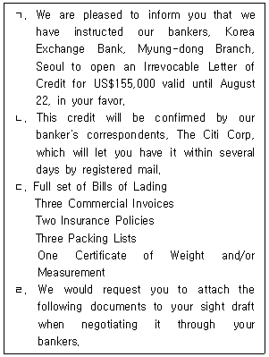 12. 다음 무역 서한문의 순서를 옳게 나열한 것은?