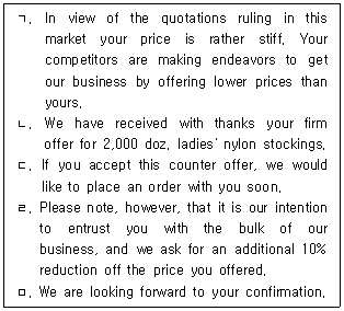 21. 다음 반대청약서(counter offer sheet)의 내용을 순서대로 옳게 나열한 것은?