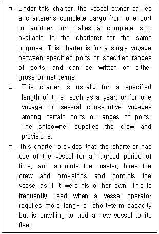 28. 다음에서 설명하는 용선계약 종류를 순서대로 옳게 나열한 것은?