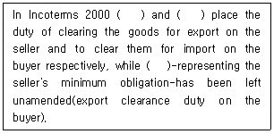 33. 다음 Incoterms 2000에 관한 내용 중 ( )안에 들어갈 적합한 조건은?
