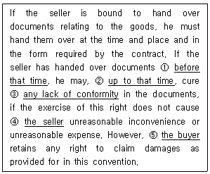 37. 다음 국제물품매매계약에 관한 유엔협약(비엔나협약, 1980) 제34조의 내용이 잘못 표현된 부분은?