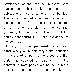 5. 다음은 국제물품매매계약에 관한 유엔협약(비엔나협약, 1980) 제81조의 내용이다. ( )안에 들어갈 단어를 순서대로 옳게 나열한 것은?