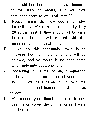 30. 계약의 변경에 관한 다음 무역통신문의 내용을 순서대로 바르게 나열한 것은?