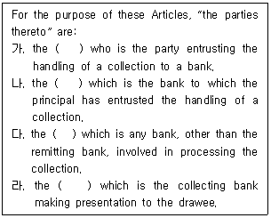 40. 추심에 관한 통일규칙(URC 522)상의 '추심의 관련 당사자'에 관한 다음 내용에서 ( ) 안에 들어갈 용어를 순서대로 바르게 나열한 것은?