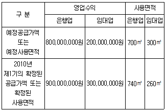 10. 갑 은행은 2010년 1월초 건물을 신축하고 이 건물의 일부는 「은행법」에 의한 은행업으로 사용하고 나머지는 제3자에게 상가로 임대하기로 하였으며, 이 건물의 신축에 관련된 매입세액은 10억원이었다. 다음 자료에 의할 때 2010년 제1기 부가가치세 확정신고시 매입세액의 정산액은 얼마인가? (단, 제1기 예정신고시에는 임대업의 공급가액이 없어서 매입세액은 예정사용면적에 의해 공제받았다.)