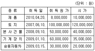 3. 사업자 A는 의류제조업을 하다가 2010년 4월 30일 폐업하였다. 폐업 당시 남아있는 재화가 다음 자료와 같다면 부가가치세 과세표준은 얼마인가? (단, 세금계산서는 모두 적법하게 발급받았으며, 승용자동차는 비영업용 소형승용자동차로 2009년 제1기 부가가치세 신고시 동 차량의 매입세액을 공제받지 아니하였다.)