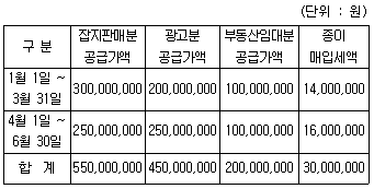4. A법인은 자기 건물에서 잡지사를 운영하고 있다. A법인의 2010년 제1기 거래내용이 다음과 같을 때 2010년 제1기 예정 및 확정 신고시 면세사업 관련 매입세액은 각각 얼마인가? (단, 잡지는 「잡지 등 정기간행물의 진흥에 관한 법률」에 따른 정기간 행물이고, 세금계산서는 적법하게 수수하였다. 종이는 외부 판매없이 잡지와 광고에만 사용하였으며, 그 실지귀속을 구분할 수 없다.)