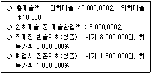 9. 다음은 2010. 3. 31. 폐업한 갑 법인의 2010년 제1기 부가가치세 과세표준에 관한 자료이다. 이 자료로 갑 법인의 2010년 제1기 부가가치세 과세표준을 계산하라. (단, 갑 법인은 주사업장 총괄납부나 사업자단위과세를 신청하지 아니하였으며, 외화매출은 현금매출로서 판매시의 환율은 1,100원 : $1, 실제 환전시의 환율은 1,200원 : $1 이다.)