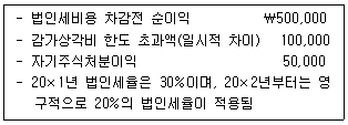 11. 다음은 20×1년 초에 설립된 (주)관세의 20×1년도 법인세 관련 자료이다.
