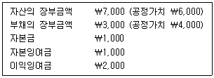 18. (주)관세는 (주)세관을 인수하면서 (주)세관의 발행주식 중 50%를 ₩3,000에 매입하였다. (주)세관에 관한 재무정보와 실사결과가 다음과 같다면 (주)관세가 인식할 영업권은 얼마인가?