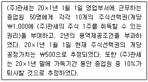 27. (주)관세의 주식기준보상에 관한 자료는 다음과 같다. 다음 설명 중 옳지 않은 것은?
