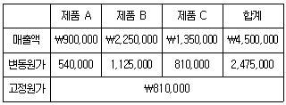 39. (주)관세는 제품A와 B, C를 생산 및 판매하고 있으며, 20×1년의 예산 자료는 다음과 같다.