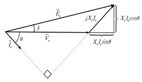 19. 그림과 같은 동기발전기의 페이서도에 대한 설명으로 옳지 않은 것은?