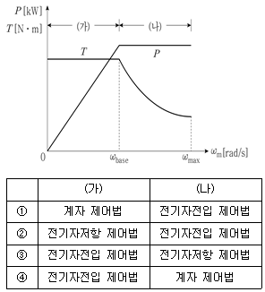 7. 그림의 (가)와 (나) 영역에 적합한 타여자 직류전동기의 속도제어법은?
