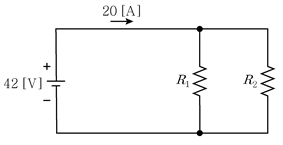 3. 그림의 회로에서 R1과 R2 저항값의 차[Ω]는? (단, R1+R2=10[Ω]이다)