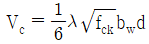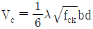 , Vs는 철근의 공칭전단강도, λ는 경량콘크리트 계수, fck는 콘크리트의 설계기준압축강도, bw는 부재의 복부 폭, d는 부재 단면의 유효깊이이다)