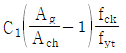 일 때, C1은? (단, Ag는 기둥의 전체 단면적, Ach는 나선철근의 바깥선을 지름으로 하여 측정된 나선철근 기둥의 심부 단면적, fck는 콘크리트의 설계기준압축강도, fyt는 나선철근의 설계기준항복강도이고 700MPa 이하이다)