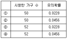 10. 어떤 방송사의 저녁 뉴스 시청률을 알아보기 위해 400가구를 조사했다. 이 방송사 저녁 뉴스를 시청하는 비율 p에 대한 가설 H0 : p = 0.1 대 H1 : p>0.1 에 대한 검정에서 Z-검정통계량의 값이 2일 때, 조사한 400가구 중 이 방송사 저녁 뉴스를 시청한 가구 수와 유의확률을 바르게 연결한 것은? (단, 확률변수 Z가 표준정규분포를 따를 때 P(Z≤2) = 0.9772 이다)