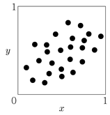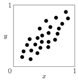 2. 자료 (xi, yi)(i = 1,2,…,n)에 단순선형회귀모형 yi = β0+β1xi + εi를 적합하여 분석하고자 한다. 다음 산점도 중 단순선형회귀모형의 결정계수가 가장 큰 것은?