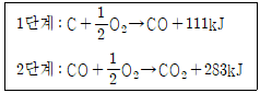78. 탄소가 다음 반응과 같이 진행하여 완전 연소될 경우 생성되는 열량(kJ)은?