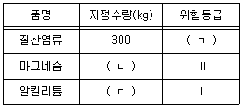 87. 위험물안전관리법령상 위험물의 지정수량과 위험등급에 관한 내용이다. 다음 ( )에 알맞은 것은?
