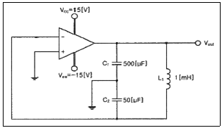 14. 다음 회로에서 발진을 지속하기 위한 증폭기 이득(Av)과 발진주파수(fo)는 약 얼마인가?