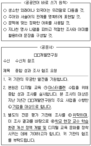 1. <공공언어 바로 쓰기 원칙>에 따라 <공문서>의 ㉠~㉣을 수정한 것으로 적절하지 않은 것은?