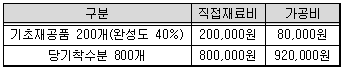 10. ㈜창현은 단일 제품을 대량 생산한다. 원재료는 공정 초기에 전량 투입되고, 가공비는 공정 전반에 걸쳐 균등하게 발생한다. 당기 완성분 700개, 기말재공품은 300개(완성도 50%)이다. 다음 자료를 참조하여 선입선출법에 의한 가공비 완성품환산량을 계산하시오.