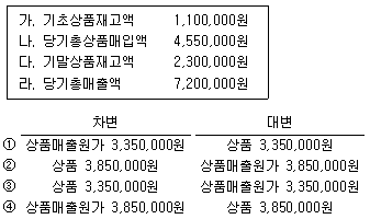 7. 다음의 자료를 바탕으로 상품매출원가를 계산하여 결산분개한 것으로 옳은 것은?