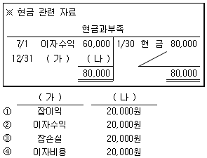 13. 다음은 한국상사의 현금과부족 자료이다. 결산 시 현금과부족 계정 잔액의 원인이 밝혀지지 않았다. 결산 시 계정과목과 금액으로 옳은 것은? 단, 회계기간은 1월 1일부터 12월 31일까지이다.