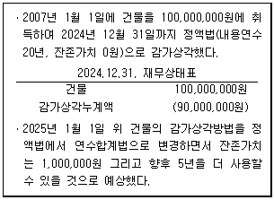 3. 다음 자료를 이용하여 2025년도 손익계산서에 표시할 감가상각비를 계산하면 얼마인가?