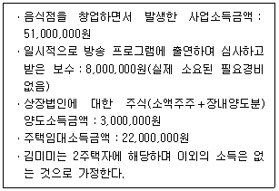 14. 다음은 김미미의 2025년도 소득자료이다. 김미미의 2025년 종합소득금액을 계산하면 얼마인가?