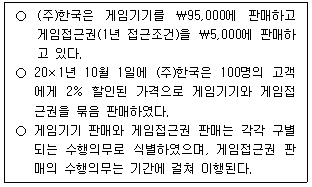 6. 다음 자료를 이용한 (주)한국이 20×1년도 포괄손익계산서에 인식할 게임접근권에 대한 수익은? (단, 수익은 월할 계산한다)