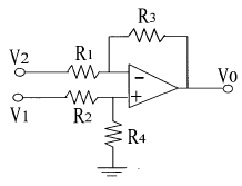 19. 그림과 같은 연산증폭기 회로의 출력전압 V0는 몇 V 인가? (단, R1=R2=2Ω, R3=R4=20Ω, V1=3V, V2=6V이다.)