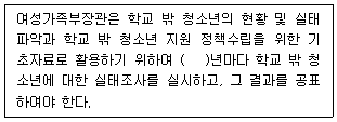 29. 학교 밖 청소년 지원에 관한 법률상 ( )에 들어갈 숫자로 옳은 것은?
