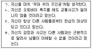 50. 엘킨드(D. Elkind)의 상상적 청중(imaginary audience)에 관한 설명으로 옳은 것을 모두 고른 것은?