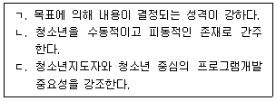 67. 다음에서 설명하는 청소년프로그램 개발 접근 원리는?
