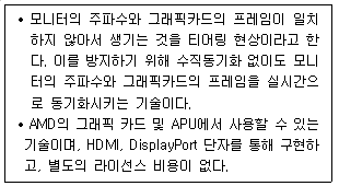 17. 사무실 관리자는 직원들의 눈의 피로도를 줄이기 위해 모니터 교체를 검토하고 있다. 모니터가 1초 동안 화면을 새로 표시(갱신)하는 횟수를 나타내며, 60Hz, 75Hz, 144Hz 등으로 표시되는 모니터 용어는?